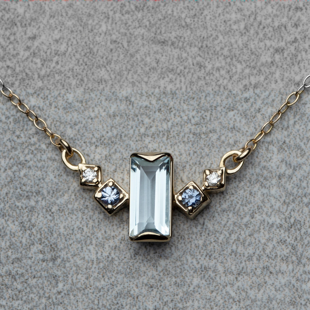 Apex Necklace - Sky blue topaz, blue sapphires & diamonds